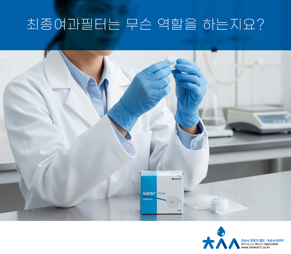 ÃÖÁ¾¿©°ú ÇÊÅÍ (Final Filter)´Â Ãʼø¼ö¸¦ Á¦Á¶ÇÑ ÈÄ, Ãʼø¼ö¸¦ ¹Þ±â Á÷Àü¿¡ ÀÔÀÚ, ¹ÚÅ׸®¾Æ, ¹Ì·®ÀÇ °íºÐÀÚ ´Ü¹éÁú, VOC ¹°Áú µî°ú °°Àº °ÍÀ» Á¦°ÅÇÏ´Â ¿ªÇÒÀ» ÇÕ´Ï´Ù.
